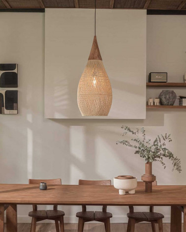 Horn je elegantná a štýlová závesná lampa, ktorá vynikne aj samostatne, ale výborne sa kombinuje aj v skupine viacerých tienidiel nad jedálenský stôl. Výplet z ratanu vytvára organické línie a je ručne tvorený tradičnou technikou z Jávy, čo prináša jedinečný efekt do interiéru. Lampa je dostupná v niekoľkých veľkostiach a farebných prevedeniach, prírodnom aj tmavom aby sa hodila do rôznych veľkostí miestností i štýlov bývania.