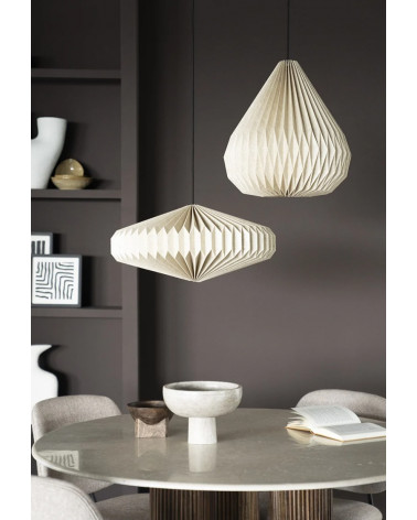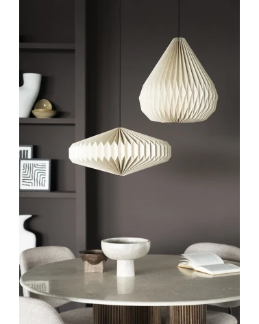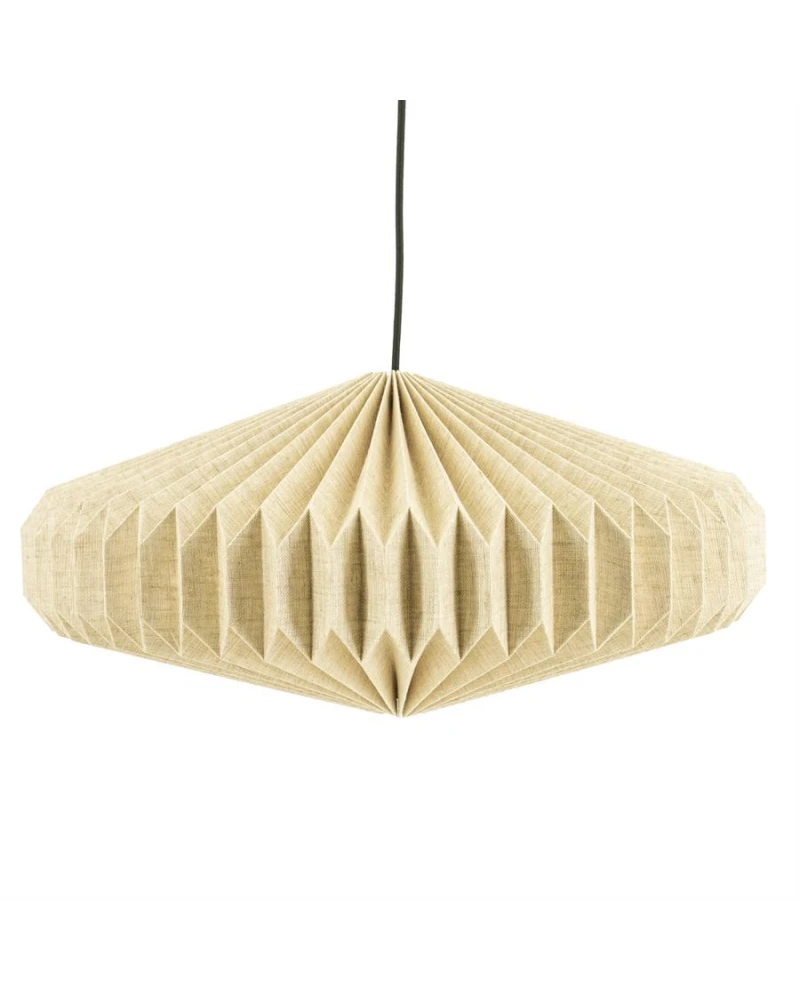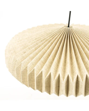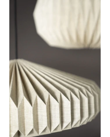 Táto závesná lampa zo skladaného ľanu prináša do interiéru jemnosť, útulnosť a prirodzenú krásu. Ručne tvarovaný textilný tienidlo vytvára zaujímavú hru svetla a tieňov, pričom jeho organické záhyby dodávajú lampe vzdušný a elegantný vzhľad. Vneste do svojho priestoru jemnú hru svetla a prírodných textúr s touto jedinečnou lampou!