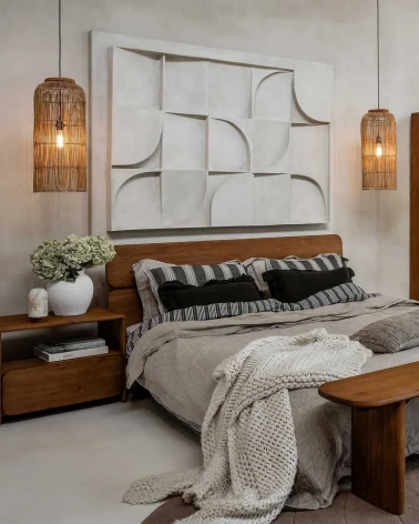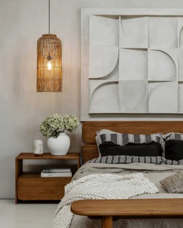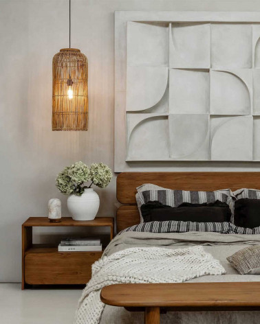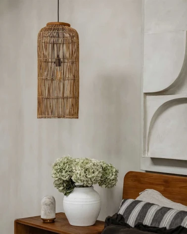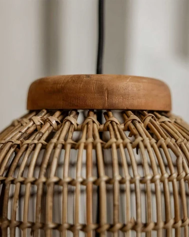 Lampa Aura predstavuje hravú rovnováhu medzi ľahkosťou a charakterom. Táto závesná lampa, ručne tkaná z ratanu a s vrchnou doskou z recyklovaného teakového dreva, prináša do každého interiéru teplú a prírodnú atmosféru. Aura je dostupná v rôznych veľkostiach a v hnedých a prírodných tónoch. Skvele pôsobí samostatne alebo v kombinácii s inými lampami, čím vytvára výrazný vizuálny efekt.