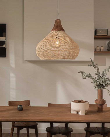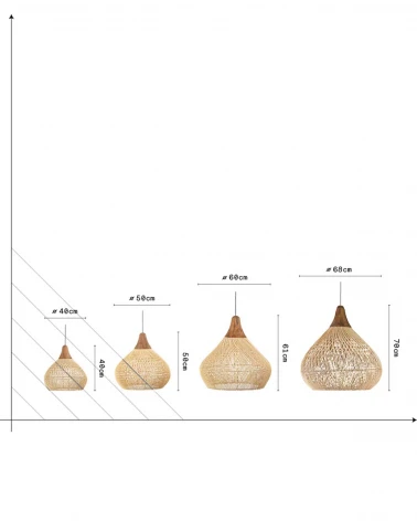 Lampa Bell výborne funguje samostatne ako hlavný prvok v miestnosti, ale v kombinácii viacerých kusov rôznych veľkostí či farieb vytvorí efekt, ktorý pritiahne pohľad. Ideálna do obývačky, nad jedálenský stôl, do otvorených priestorov alebo tam, kde chcete pridať dotyk prírody a remeselnej tradície.