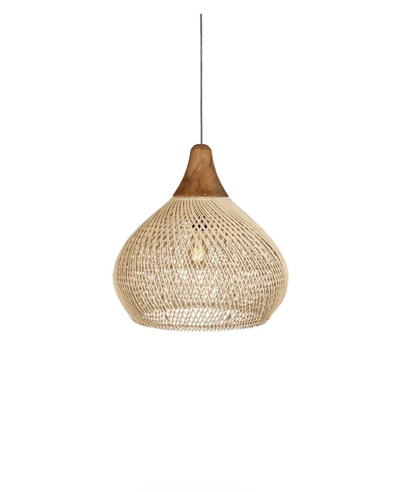 Lampa Bell od dBodhi je elegantná závesná lampa pripomínajúca kvapku, ktorá vnesie atmosféru pokoja do každého priestoru. Tienidlo je ručne tkané z prírodného ratanu podľa tradičných jávskych techník, čo mu dodáva organickú textúru a jedinečný charakter. Dostupná je vo viacerých veľkostiach a farebných prevedeniach.