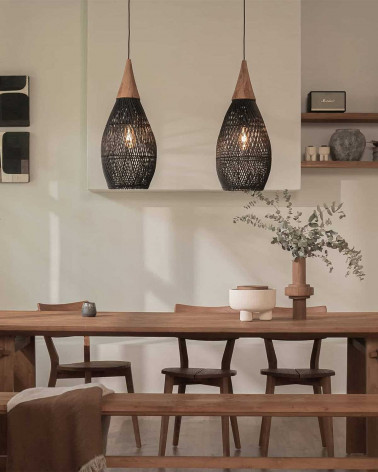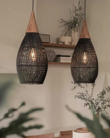 Horn je elegantná a štýlová závesná lampa, ktorá vynikne aj samostatne, ale výborne sa kombinuje aj v skupine viacerých tienidiel nad jedálenský stôl. Výplet z ratanu vytvára organické línie a je ručne tvorený tradičnou technikou z Jávy, čo prináša jedinečný efekt do interiéru. Lampa je dostupná v niekoľkých veľkostiach a farebných prevedeniach, prírodnom aj tmavom aby sa hodila do rôznych veľkostí miestností i štýlov bývania.