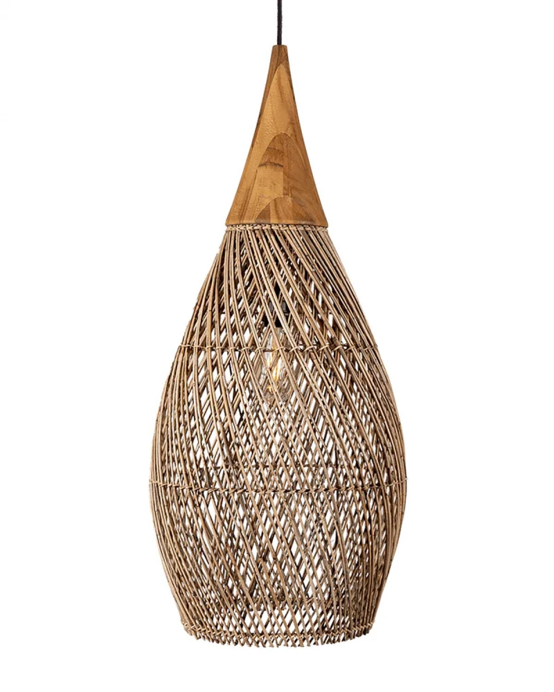 Horn je elegantná a štýlová závesná lampa, ktorá vynikne aj samostatne, ale výborne sa kombinuje aj v skupine viacerých tienidiel nad jedálenský stôl. Výplet z ratanu vytvára organické línie a je ručne tvorený tradičnou technikou z Jávy, čo prináša jedinečný efekt do interiéru. Lampa je dostupná v niekoľkých veľkostiach a farebných prevedeniach, prírodnom aj tmavom aby sa hodila do rôznych veľkostí miestností i štýlov bývania.