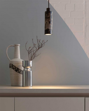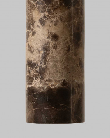 Tivoli závesná lampa ponúka elegantné prevedenie s valcovým tienidlom vyrobeným z mramoru alebo travertínu. Je zavesená na úzkom kábli, čím vytvára vzdušný a sofistikovaný efekt nad stolom alebo v miestnosti.