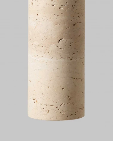 Tivoli závesná lampa ponúka elegantné prevedenie s valcovým tienidlom vyrobeným z mramoru alebo travertínu. Je zavesená na úzkom kábli, čím vytvára vzdušný a sofistikovaný efekt nad stolom alebo v miestnosti.