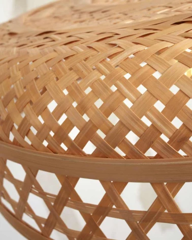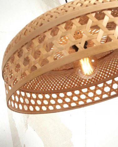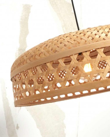 Predstavujeme úžasnú závesnú lampu Ubud od Good&Mojo, ekologické riešenie osvetlenia, ktoré kombinuje udržateľné materiály a moderný dizajn. Tienidlo je ručne vyrobené z tkaného bambusu a má jedinečný vzor, ktorý dodá teplo a textúru každému priestoru. Závesné svietidlo Ubud je dostupné v prírodnom/čiernom alebo prírodnom prevedení, vďaka čomu si môžete vybrať perfektné tienidlo, ktoré doplní váš interiér.