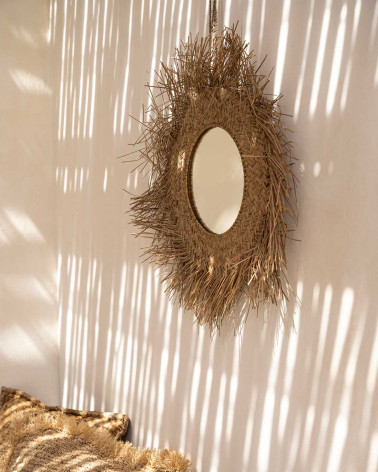 Zrkadlo Rotan, priemer 65 cm, Prírodné, Bazar Bizar