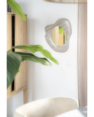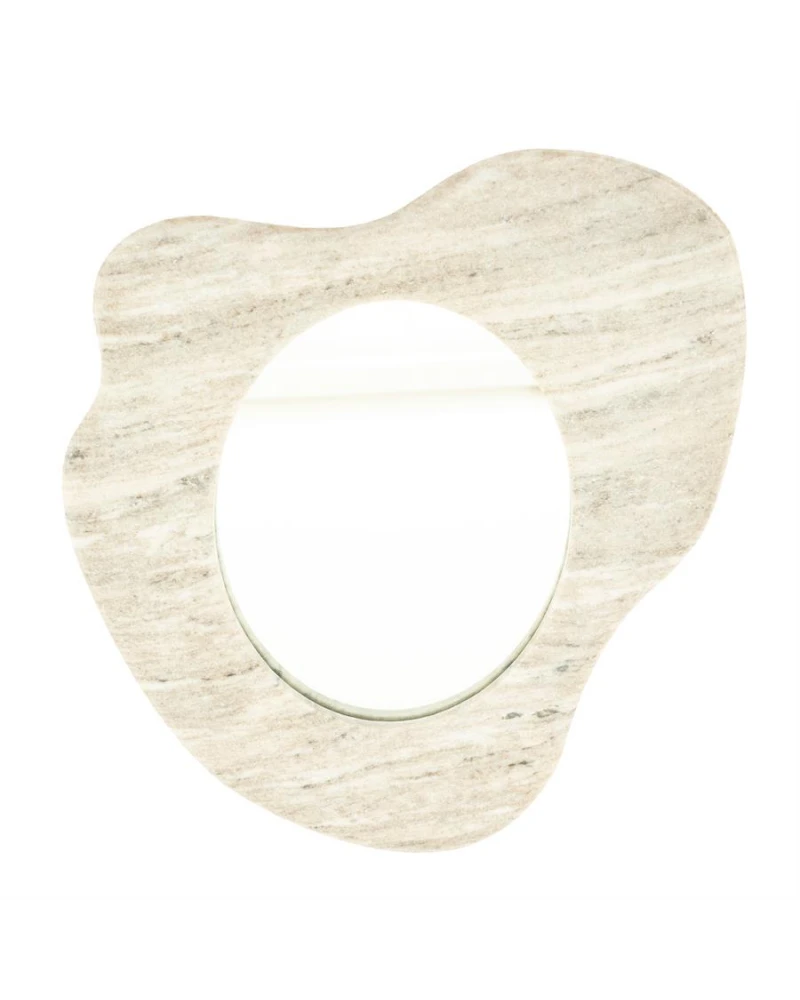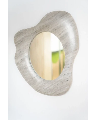 Dizajnové zrkadlo s organickým tvarom a mramorovým rámom je nadčasovým kúskom, ktorý spája prírodnú krásu s moderným štýlom. Nepravidelné línie dodávajú zrkadlu jemnú plynulosť, zatiaľ čo luxusný mramorový povrch prináša do priestoru sofistikovanosť a eleganciu.